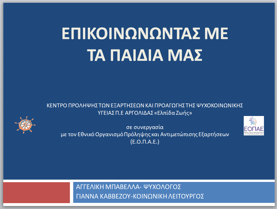 Το Κέντρο Πρόληψης των Εξαρτήσεων και Προαγωγής της Ψυχοκοινωνικής Υγείας Π.Ε. Αργολίδας «Ελπίδα Ζωής» σε συνεργασία με τον Εθνικό Οργανισμό Πρόληψης και Αντιμετώπισης Εξαρτήσεων Ε.Ο.Π.Α.Ε., συνεχίζοντας την συνεργασία με το Νηπιαγωγείο Κιβερίου και ανταποκρινόμενο σε αίτημα του, υλοποίησε μια ανοιχτή συζήτηση με τους γονείς- κηδεμόνες των μαθητών του με θέμα «Επικοινωνώντας με τα παιδιά μας», την Δευτέρα 9 Μαρτίου 2026, στην οποία συμμετείχαν και γονείς από το Δημοτικό Σχολείο.
